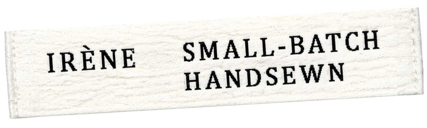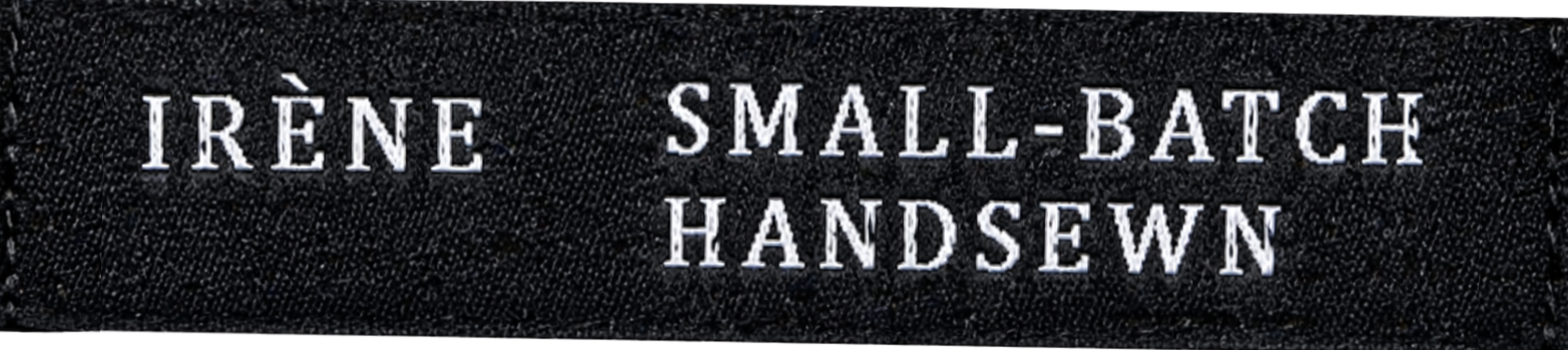 Irène is a small-batch assemblage of garments and objects designed and constructed inside MY private studio. Everything is made by hand with a focus on quality, using finishing techniques that are COMMONLY discarded by mass produced clothing. In Lieu of traditional collections and seasons, I’ll be releasing one, maybe two pieces at a time, as they’re ready. Small quantities. Often made-to-order. Each release will be capped and produced in limited numbers. Sometimes one of ten, occasionally one of one.
