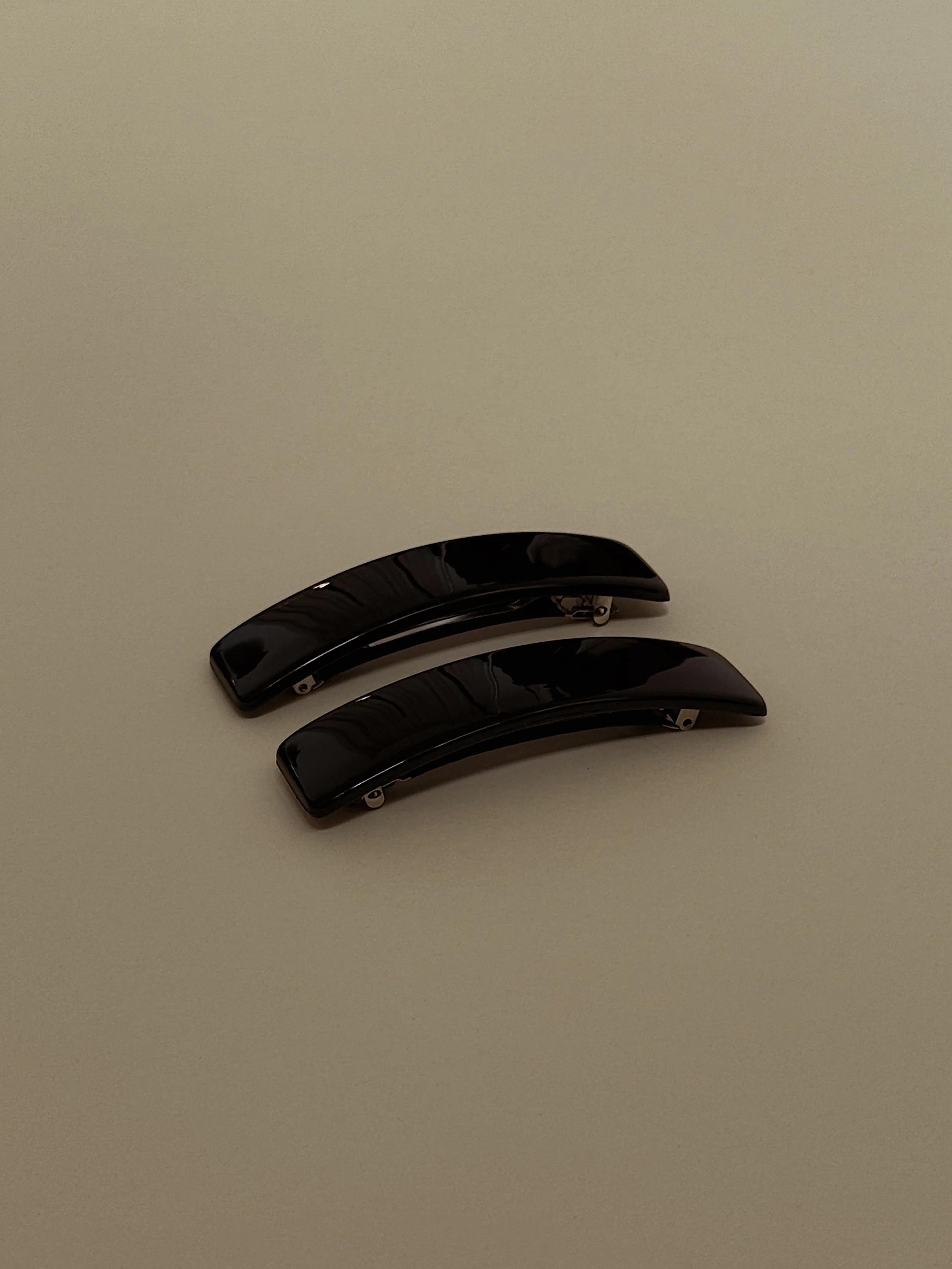 Our French barrettes are a nod to the most unforgettable runway show from my teenage years, the Calvin Klein Fall 1994/1995 catwalk in NYC. What really stuck with me more than the clothes was the models’ hair dawning those big, black rectangle barrettes. I am still obsessed 30 years later.